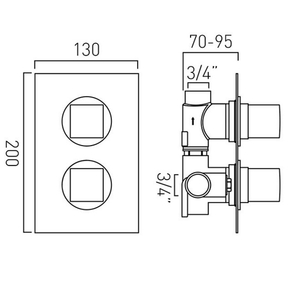 | Product Name | Vado DX Mix 1 Outlet; 2 Handle Concealed Thermostatic Valve with Rectangular Backplate (MIX-148D-C/P) |