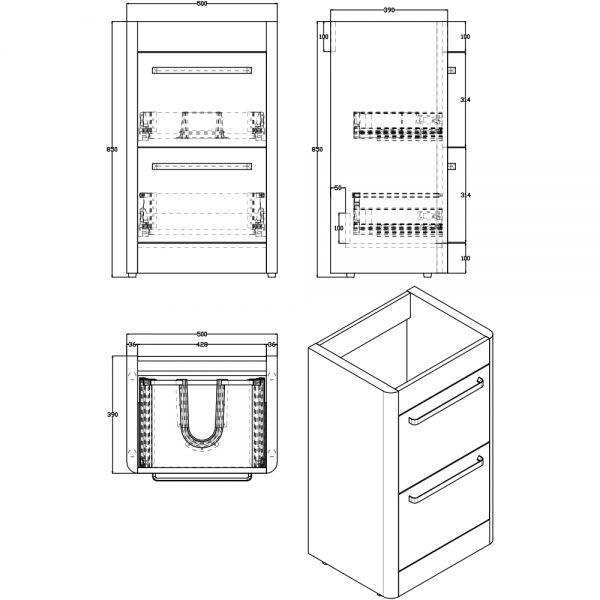 Product Name | Imex Ceramics Suburb 500x395mm Two Dawer Floor Standing Basin Unit In Matt Ash (SU5039DDFMCMA) |